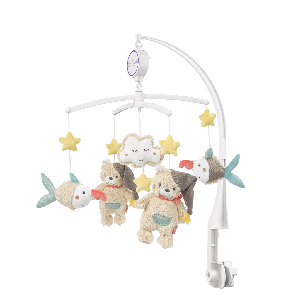 Okouzlující hudební kolotoč z kolekce Bruno zaboduje u každého dítěte. Na kolotoči najdete medvídky, rybičky, mráček i hvězdičky veselých a příjemných barev. Mechanismus se spínačem zapínání / vypínání se rychle otáčí a v příjemné hlasitosti hraje jemné melodie. Děti se rychle zabaví, kolotoč upoutá jejich pozornost a následně je ukolíbá ke spánku. Kolotoč se snadno ovládá i připevňuje nad postýlku