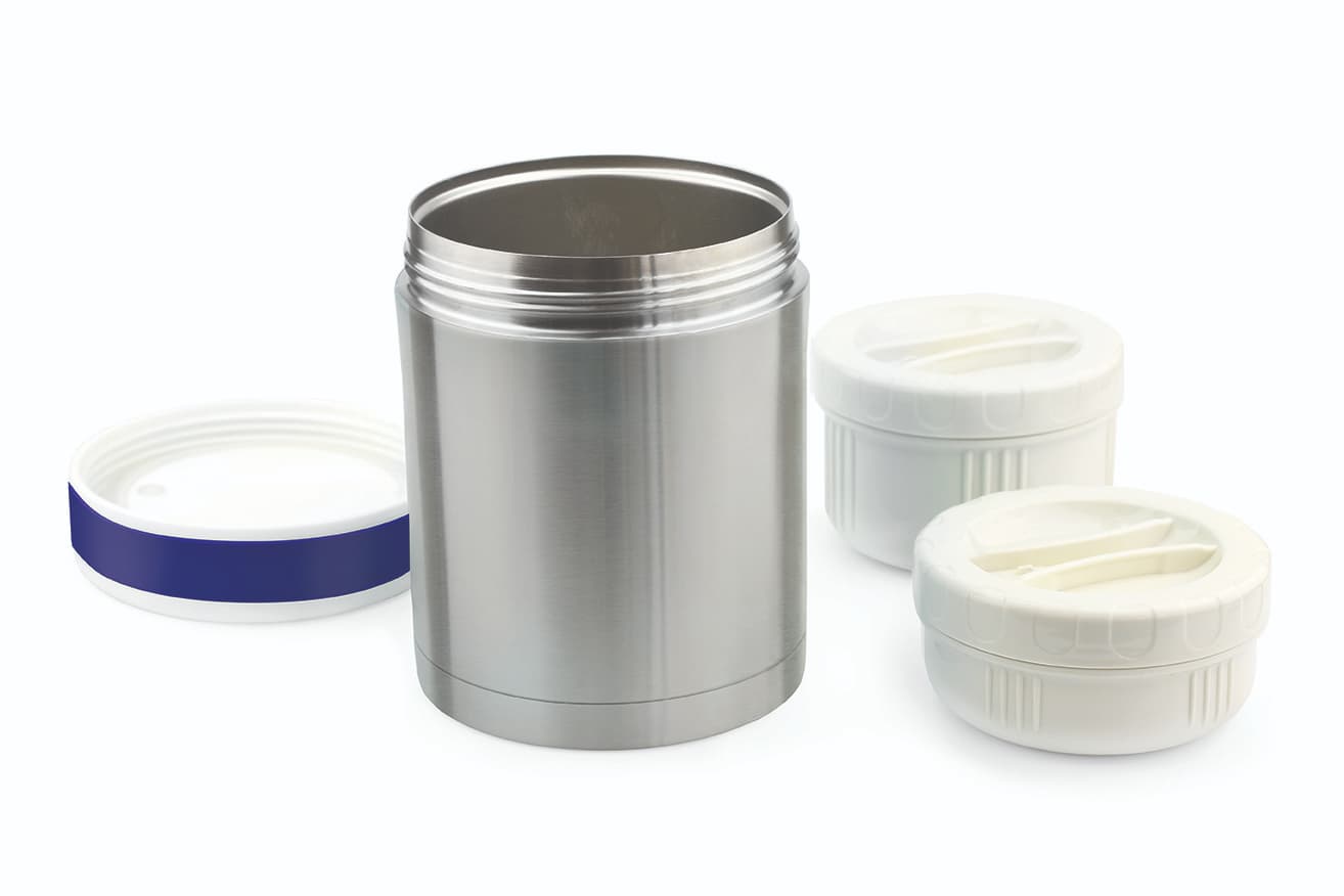 Součástí termo nádoby jsou dvě nepropustné nádobky ve velikosti 250 ml a 380