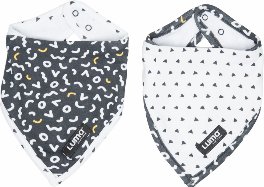 - LUMA Bandana slintáček Luma - Memphis Grey" "Barva:tmavě šedá|Materiál:100% bavlna|Vzor:Memphis grey|Zapínání:baby patent|